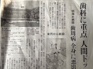 先日のメディアで、私の母校 明海大学病院で歯科と医科を連携させた人間ドックを始めるとの報道でした。
